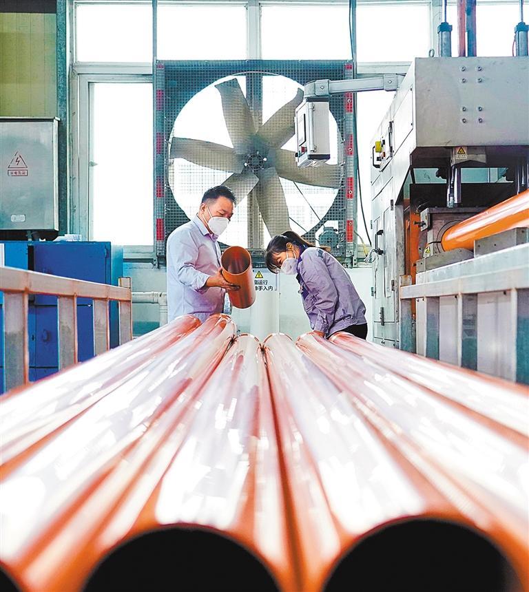 11月12日,工人正在定安县海南联塑工场出产车间查抄管道。近年来,海南联塑通过数字化、智能化转型帮奉行业成长。